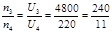 U2=U1n2/n1="250×20" V="5000" V ⑤