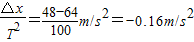 根据△x=aT2得,a=