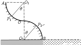 (2)如图所示,设滑块出发点为P1,离开点为P2,按题意要求O1P1、O2P2与竖直方向的夹角相等,设其为θ,若离开滑道时的速度为v,则滑块在P2处脱离滑道的条件是