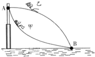 图7,游乐场中,从高处A到水面B处有两条长度相等的光滑轨道,甲、乙两小孩沿着不同轨道同时从A处自由滑向B处,下列说法正确的有
