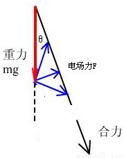 解答:解:由题,带电小球的运动轨迹为直线,在电场中受到重力mg和电场力F,其合力必定沿此直线向下,根据三角形定