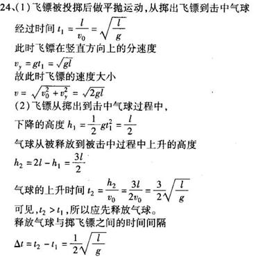 匀速上升,在升空过程中被飞镖击中。飞镖在飞行过程中受到的空气阻力不计,在计算过程中可将飞镖和气球视为质点,已知重力加速度为