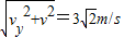 (3)石子下落0.3s时的竖直分速度vy=gt=3m/s
