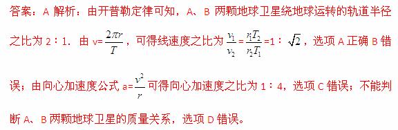 (2013唐山摸底)A、B两颗地球卫星绕地球运转的周期之比为2