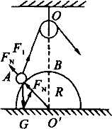 的正上方固定一小定滑轮,细线一端栓一小球A,另一端绕过定滑轮.今将小球从图中所示的初位置缓慢地拉至B点.在小球到达B点前的过程中,小球对半球的压力FN及细线的拉力F1的大小变化是