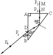 如图所示,用某种透光物质制成的直角三棱镜ABC;在垂直于AC面的直线MN上插两枚大头钉