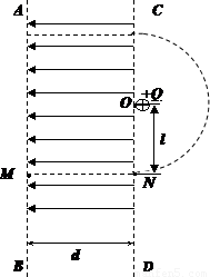 如图所示,相距为d的虚线AB、CD之间存在着水平向左的、场强为E的匀强电场,M、N是平行于电场线的一条直线上的两点,紧靠CD边界的右侧有一O点,与N点相距为l,在O点固定一电荷量为(1)电子经过N点时的速度大小.