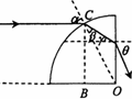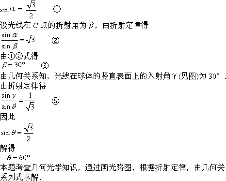 设入射光线与 1/4球体的交点为C,连接OC,OC即为入射点的法线.因此,图中的角α为入射角.过C点作球体水平表面的垂线,垂足为B.依题意,∠COB=α.又由△OBC知