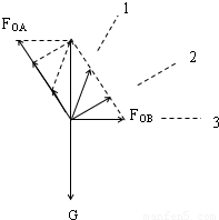 解答:解:以结点O为研究对象,分析受力:重力G、绳OA的拉力FOA和绳BO的拉力FOB,如图所示,根据平衡条件知,两根绳子的拉力的合力与重力大小相等、方向相反,