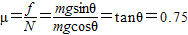 【答案】分析:(1)物体匀速下滑,受重力和支持力、滑动摩擦力处于平衡状态,根据共点力平衡求出滑动摩擦力和支持力的大小,从而求出动摩擦因数.