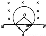 如图所示,直线MN上方存在垂直纸面向内、磁感应强度大小为B的匀强磁场,现有一质量为m、带电量为+q的粒子在纸面内以速度v从A点射入,其方向与MN成30°角,A点与直线MN的距离为d,带电粒子重力不计.试求当v满足什么条件时,粒子能回到A.
