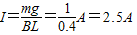 解答:解:导线受重力与安培力平衡有:mg=BIL