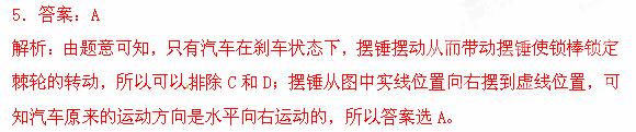 £¨2013½ËÕÃûУÖʼ죩ÈçͼËùʾÊÇÒ»ÖÖÆû³µ°²È«´ø¿ØÖÆ×°ÖõÄʾÒâͼ£®µ±Æû³µ´¦ÓÚ¾²Ö¹»òÔÈËÙÖ±ÏßÔ˶¯Ê±£¬°Ú´¸ÊúÖ±Ðü¹Ò£¬Ëø°ôˮƽ£¬¼¬ÂÖ¿ÉÒÔ×ÔÓÉת¶¯£¬°²È«´øÄܱ»À¶¯£®µ±Æû³µÍ»È»É²³µÊ±£¬°Ú´¸ÓÉÓÚ¹ßÐÔÈÆÖá°Ú¶¯£¬Ê¹µÃËø°ôËø¶¨¼¬ÂÖµÄת¶¯£¬°²È«´ø²»Äܱ»À¶¯£®Èô°Ú´¸´ÓͼÖÐʵÏßλÖðڵ½ÐéÏßλÖã¬Æû³µµÄ¿ÉÄÜÔ˶¯·½ÏòºÍÔ˶¯×´Ì¬ÊÇ£¨ £©