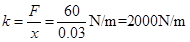 点评:容易题。据胡克定律F=kx,其中h为弹簧的劲度系数,x为弹簧的形变量(伸长量