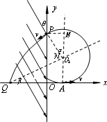 解:(1)设质子在磁场中做圆运动的半径为r. 过A、P点作速度v的垂线,交点即为质子在磁场中作圆周运动的圆心O1.由几何关系得α= 设磁感应强度为B,根据质子的运动方向和左手定则,可判断磁感应强度的方向为垂直于纸面向里.(2分) 根据: (2)设质子在磁场中运动的时间为t,如图所示,质子在磁场中转过的圆周角为 (3)如图所示,过Q点做平行于P点速度方向的平行线,交AM于N点,在三角形QAN中,边长QA=