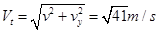 落水时竖直分速度Vy=gt=5m/s