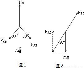 对B:分析受力如图1所示,根据对称性,有FCB=FAB,FBC=FCB,则有