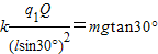 解答:解:小球A受力平衡,A球所受的库仑力F=mgtanθ.知: