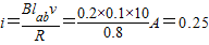 完全在磁场中运动时,a、b两端电压为 Uab2=Blabv=0.2V
