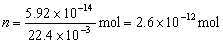 已知在大气压强为1.0×105Pa、温度为273K时1mol理想气体的体积为22.4×10-3m3,因此管内气体的摩尔数 所以管内所含分子数大约为N = nNA = 2.6×10-12×6.0×1023 (个) = 1.6×1012(个) |