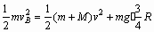 (1)物体由A滑到B的过程中,容器不脱离墙,物块由B沿球面向上滑时,物块对容器的作用力有一水平向右的分量,容器将脱离墙向右运动.因此,物块由A→B动量变化量最大,受容器的冲量最大,竖直墙作用于容器的冲量也最大. 物块由A→B机械能守恒,设物块滑到B的速度为vB,则 ∴ 物块动量变化量 容器不动,墙对容器的冲量 (2)物块从B处上升,容器向右运动过程中,系统水平方向动量守恒.物块上升到最高处相对容器静止的时刻,物块与容器具有共同的水平速度,设它为v,则由动量守恒定律得 系统机械能守恒 联立①②③式解得 M=3 m |