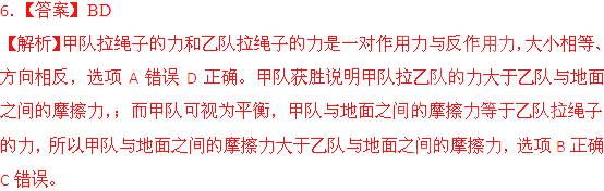 甲乙两队进行拔河比赛,不计绳子质量,结果甲队获胜,则比赛中