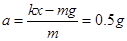 ,方向向上。此刻合外力F=kA=0.5mg即根据简谐振动的特点,在最高点的加速度应为0.5g,方向向下。所以