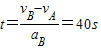 在这段时间内两车的位移分别为xA=vAt=400m ③