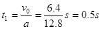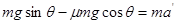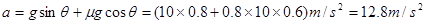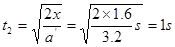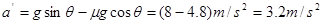 ⑵返回斜面底端时的速度大小v = a′t2 =3.2 m/s (2分)