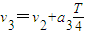 粒子从t=T/2时开始加速,设经过时间t2粒子速度为零,有0=v2+a3t2,解得 t2=