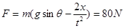 (14分)在某市某一旅游景区,建有一山坡滑草运动项目. 该山坡可看成倾角θ=30°的斜面,一名游客连同滑草装置总质量m=80kg,他从静止开始匀加速下滑,在时间t=5s内沿斜面滑下的位移x=50m. (不计空气阻力,取g=10m/s2,结果保留2位有效数字)问:
