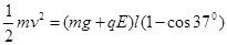 (2) 电场方向变成向下后,小球开始摆动做圆周运动,重力、电场力对小球做正功。