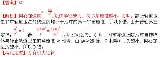 A. 静止轨道卫星的向心加速度比中轨道卫星向心加速度小