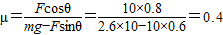 答:金属块与桌面间的滑动摩擦因数为0.4.