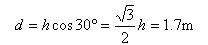 玻璃的厚度d就是边长为h的等边三角形的高,故