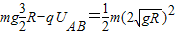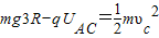 如图所示,在竖直平面内,光滑的绝缘细杆AC与半径为R的圆交于B、C两点,在圆心O处固定一正电荷,B为AC的中点,C位于圆周的最低点.现有一质量为m、电荷量为-q、套在杆上的带负电小球(可视为质点)从A点由静止开始沿杆下滑.已知重力加速度为g,A、C两点的竖直距离为3R,小球滑到B点时的速度大小为2(1)小球滑至C点时的速度大小;