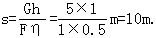 一滑轮组拉起重物时的拉力与物体重力之比为1:5, 滑轮组效率η=50%, 当把一物体举起h=1m时绳子必须拉下的距离为______m.|