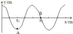 如图所示,一列横波沿x轴正方向传播.当位于x1=2cm处的A质点处在x轴的下方最大位移处时,位于x2=5cm处的B质点恰好在平衡位置,而且运动方向向上.已知A、B两质点在x轴上的距离小于波长,则这列波的波长为 .并在图中画出x=0到x=8cm区间内该时刻波的图象.