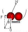 解:对左侧小球进行受力分析:重力G、碗的支持力N和另一球的弹力F.设N与竖直方向的夹角为θ,由几何知识得:sinθ=