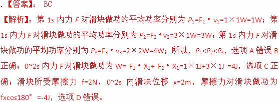 (2013北京海淀期中)一滑块在水平地面上沿直线滑行,t=0时其速度为2.0m/s。从此刻开始在滑块运动方向上再施加一水平拉力F,力F和滑块的速度v随时间t的变化规律分别如图7甲和乙所示。设在第1s内、第2s内、第3s内力F对滑块做功的平均功率分别为P1、P2、P3,则( )