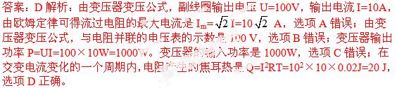 D.在交变电流变化的一个周期内,电阻产生的焦耳热是20 J