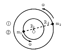 (1) 见解析;(2)两天体组成的双星做圆周运动的角速度 ω相同,二者的轨道是圆心为O的同心圆,圆的半径分别为