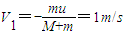 根据动量守恒定律,有MV1+m(V1+u)=0…①