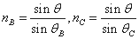 ,入射角为θ,折射角分别为θB、θC,连结OB、OC.(1分)
