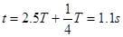 或:振动传到Q点需2.5个周期,因质点起振方向向上,第一次到达波峰再需1/4周期,故