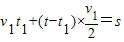 10s内汽车由A到B且停在B点,设车从A经t1开始刹车: