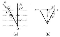 由光路图(a)可得,从水面正上方看水下的点光源