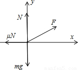 对物体受力分析,受拉力F,支持力N,滑动摩擦力,如图