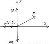 点评:本题关键对物体受力分析,根据牛顿第二定律列式,根据图象得到两组数据,然后联立方程组得到物体与水平面间的动摩擦因数以及比例系数.