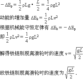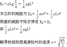 如图所示,总长为L的光滑匀质铁链跨过一个光滑的轻小滑轮,开始时下端A、B相平齐,当略有扰动时其一端下落,则当铁链刚脱离滑轮的瞬间,铁链的速度为多大?